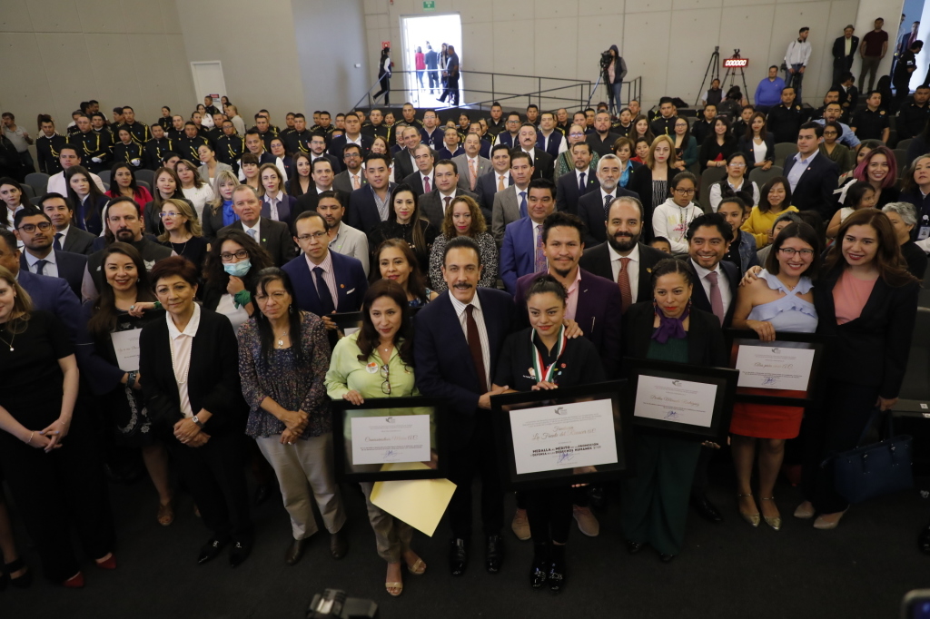Pachuca de Soto, Hidalgo.- El gobernador Omar Fayad entregó la Medalla al Mérito en la Promoción y Defensa de los Derechos Humanos 2019 a Claudia Rivera Gómez, presidenta de la fundación ‘La fuente del renacer’ asociación civil.