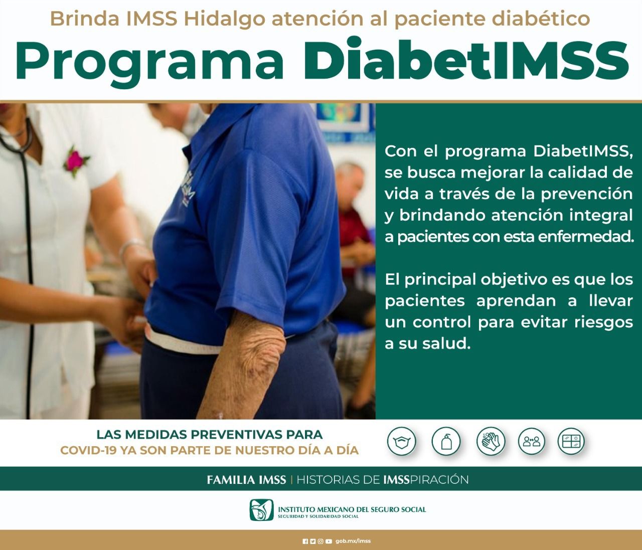 PACHUCA.- Con el programa DiabetIMSS, el Instituto Mexicano del Seguro Social (IMSS) en Hidalgo busca mejorar la calidad de vida a través de la prevención y brindando atención integral a pacientes con esta enfermedad.
