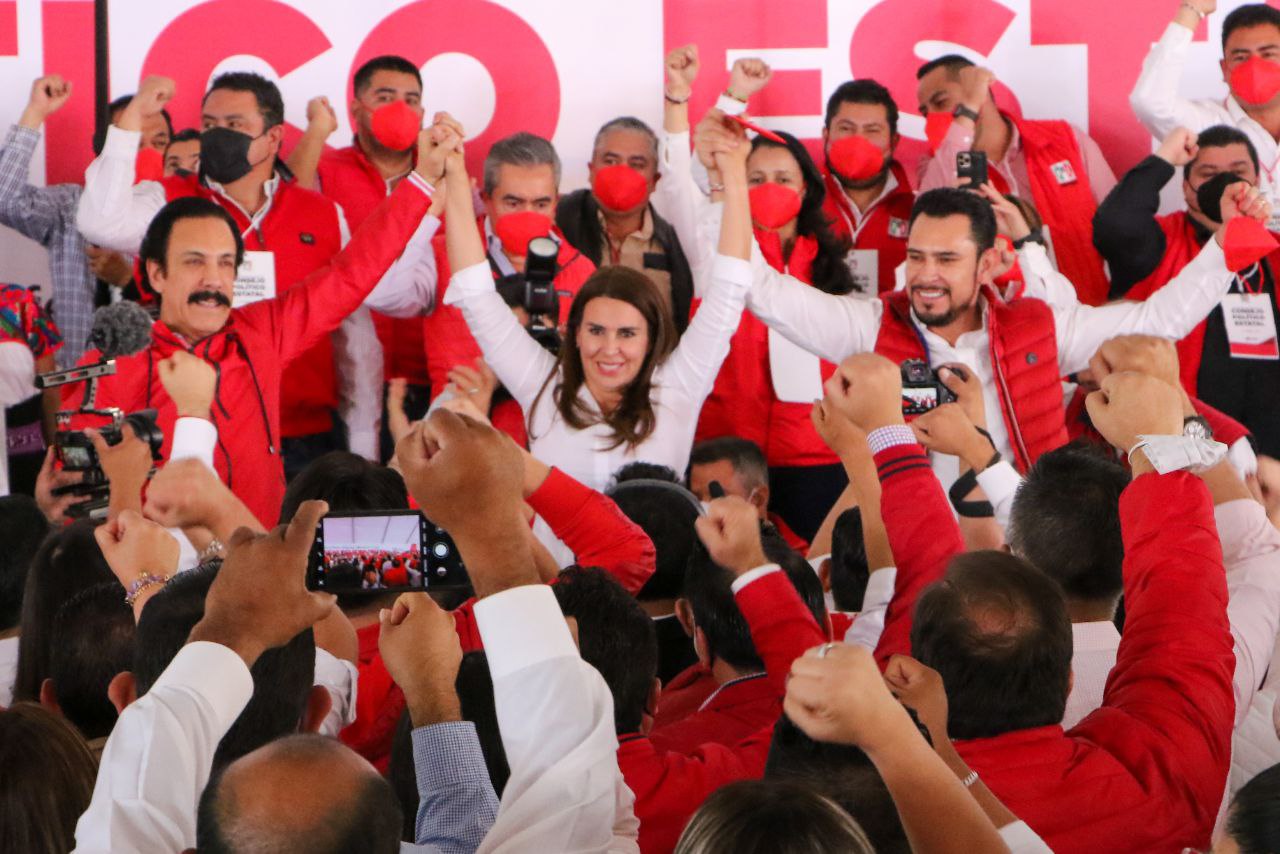 • En Hidalgo, la secretaria general del PRI celebró, junto con el líder nacional, Alejandro Moreno, con los gobernadores Omar Fayad, Alejandro Murat y Alfredo del Mazo, y los coordinadores parlamentarios, Rubén Moreira y Miguel Ángel Osorio Chong, el 93 Aniversario de este instituto político.
