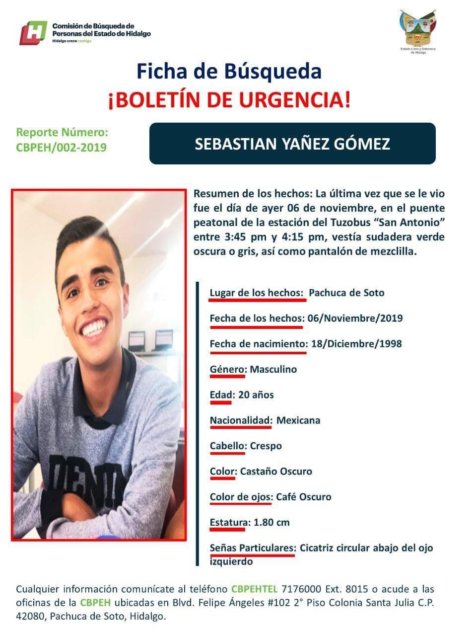 El 07 de noviembre de 2019, en Pachuca se inició una carpeta de investigación por la desaparición de S. Y. G.